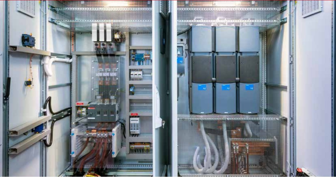1941年起,Buma泵站與位于東側(cè)的Smeenge泵一起為荷蘭東北部圩田的排水發(fā)揮著重要的作用。時至今日,Buma泵站依舊是圩田水位管理的重要組成部分。該泵站配備三臺大型垂直離心泵,每臺泵的最大流速為750立方米/分鐘,泵頭為5.6米。每臺泵由850kW的三相感應(yīng)電機(jī)驅(qū)動。當(dāng)前的泵和690V變速電機(jī)由西班牙制造商Alconza出品,自2006年開啟使用。隨著時間的推移,變頻器的故障逐漸增多,甚至出現(xiàn)備件難以獲得的情況。為了確保泵的持續(xù)可用性,2018年去水務(wù)局決定對現(xiàn)有的變頻器進(jìn)行更換。